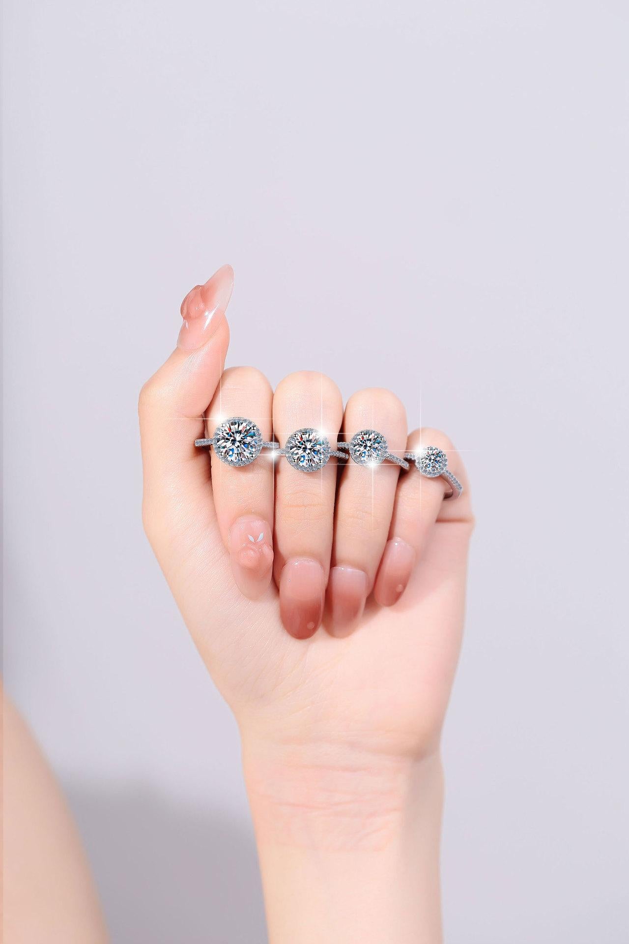 S925 Sterling Silver Round Halo Ring Synthetic Moissanite Ring-156(35%)