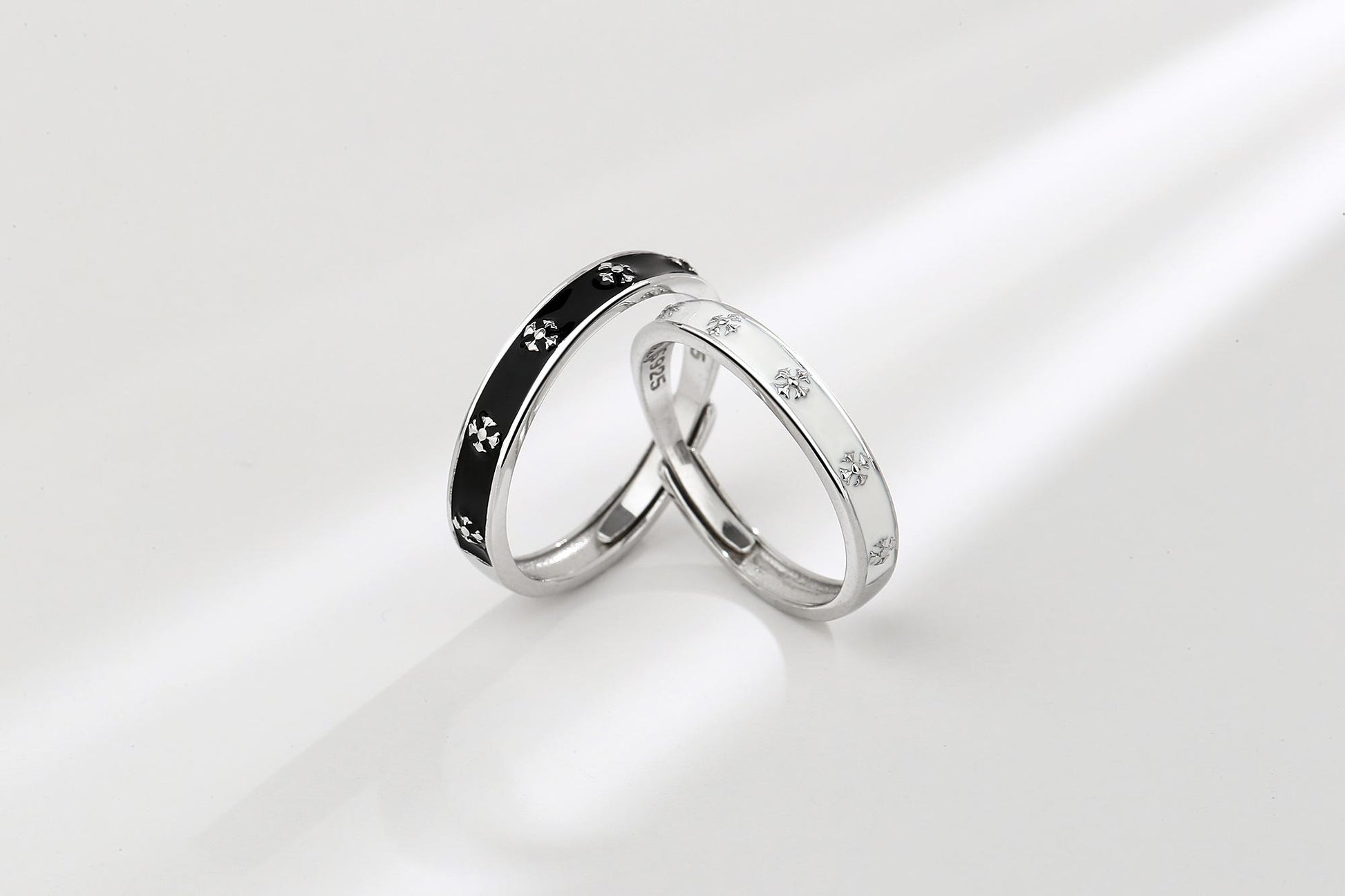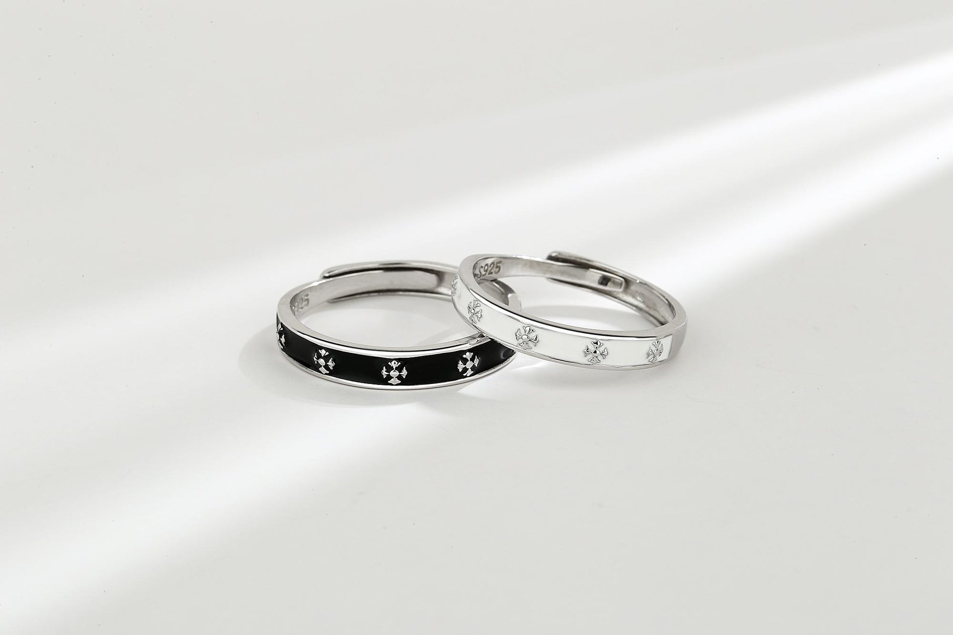 S925 Sterling Silver Simple Couple Rings Black and White Matte Rhombus Design-484(45%)