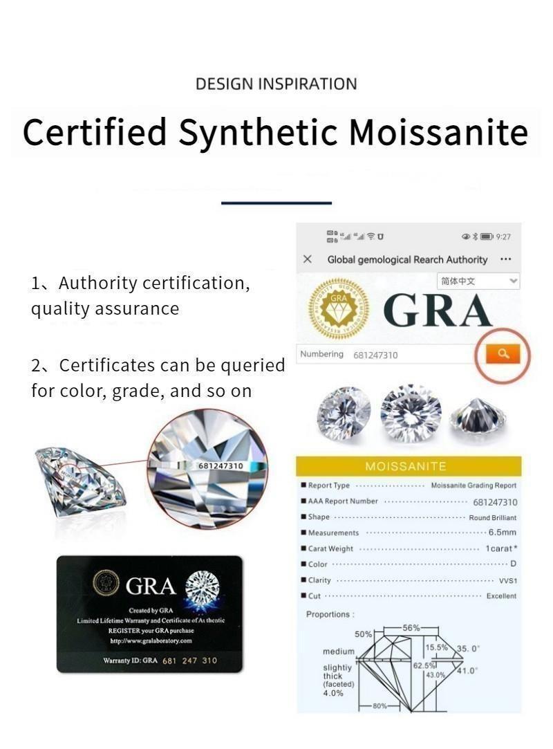 Type: Certified high grade synthetic moissanite.It's color grade is D, clarity grade is VVS1, cut grade is E, Superflash synthetic moissanite.
