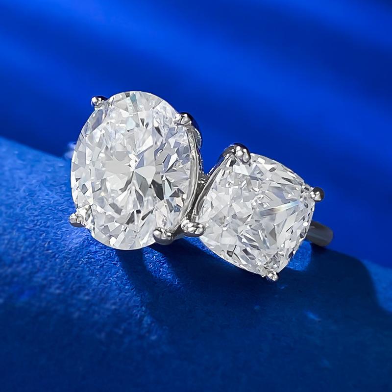 S925 sterling silver two stones oval ring 8*10mm 6A cubic zirconia ring fashion jewelry accessory woman girl promise ring Springtok-200(35%)