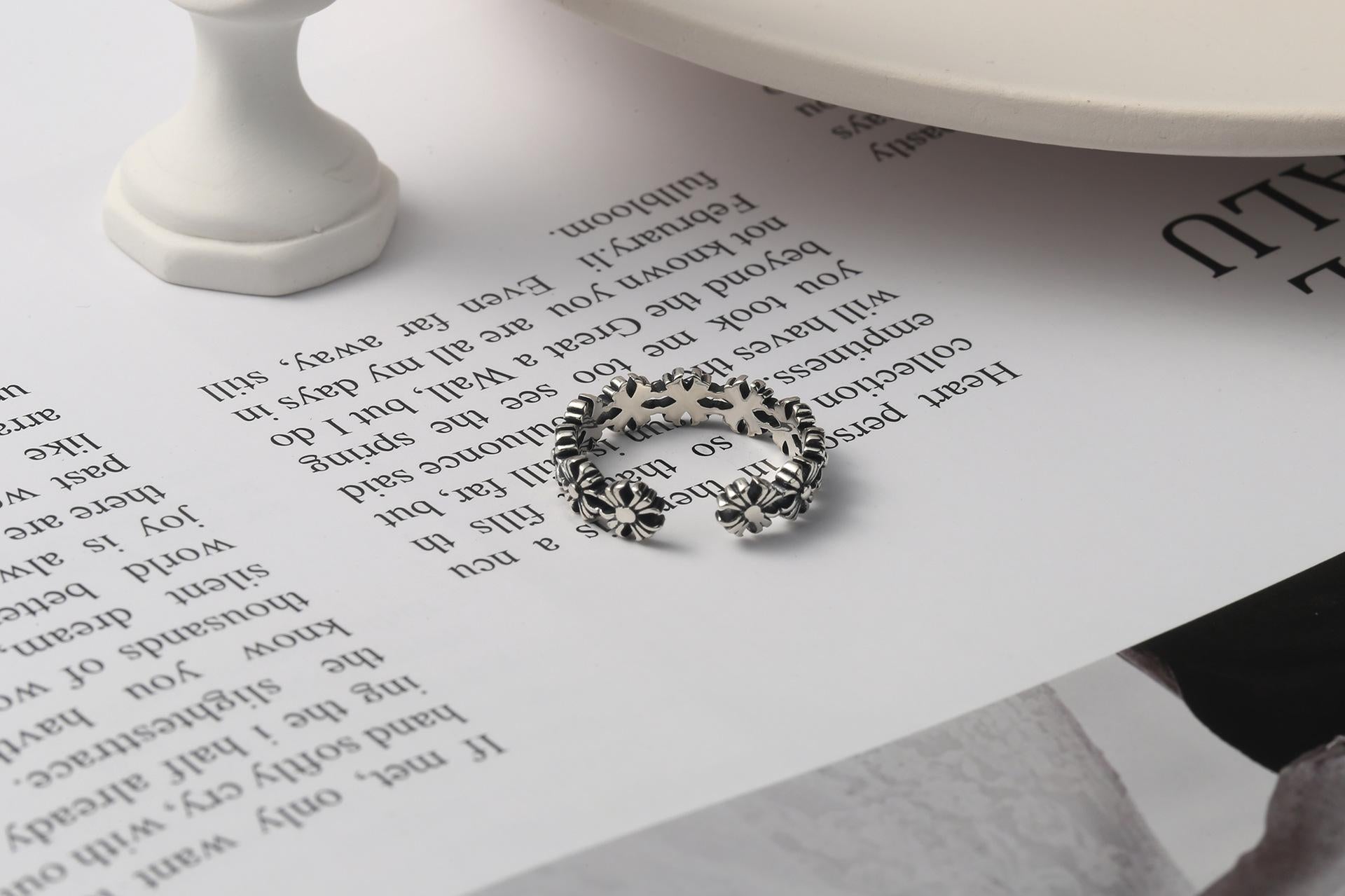 S925 Sterling Silver Vintage Cross Ring Single Finger Tail Ring for Women - 483(45%)