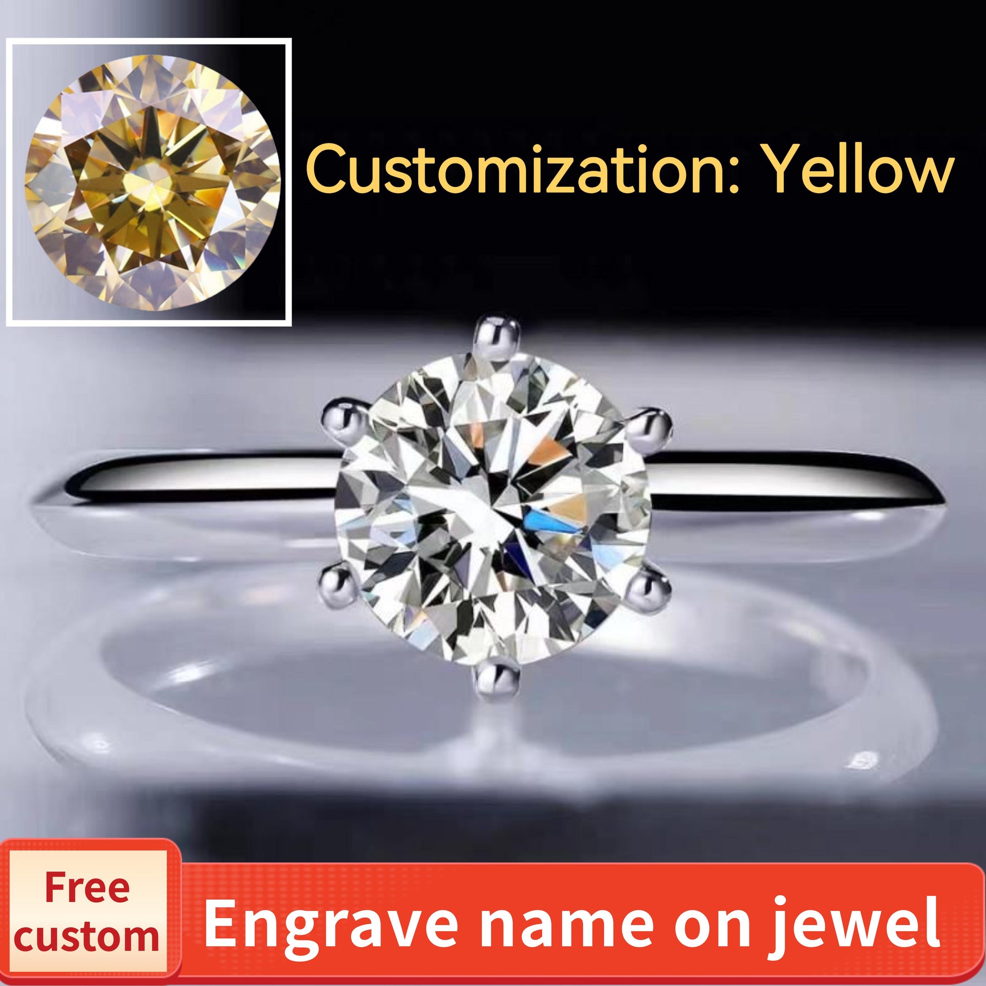Yellow-S925 Sterling Silver D Color Synthetic Moissanite Six-claws Ring 1/2/3/5 Carat Elegant Luxury Daily Life Woman Birthday Gift Engagement-235(35%)