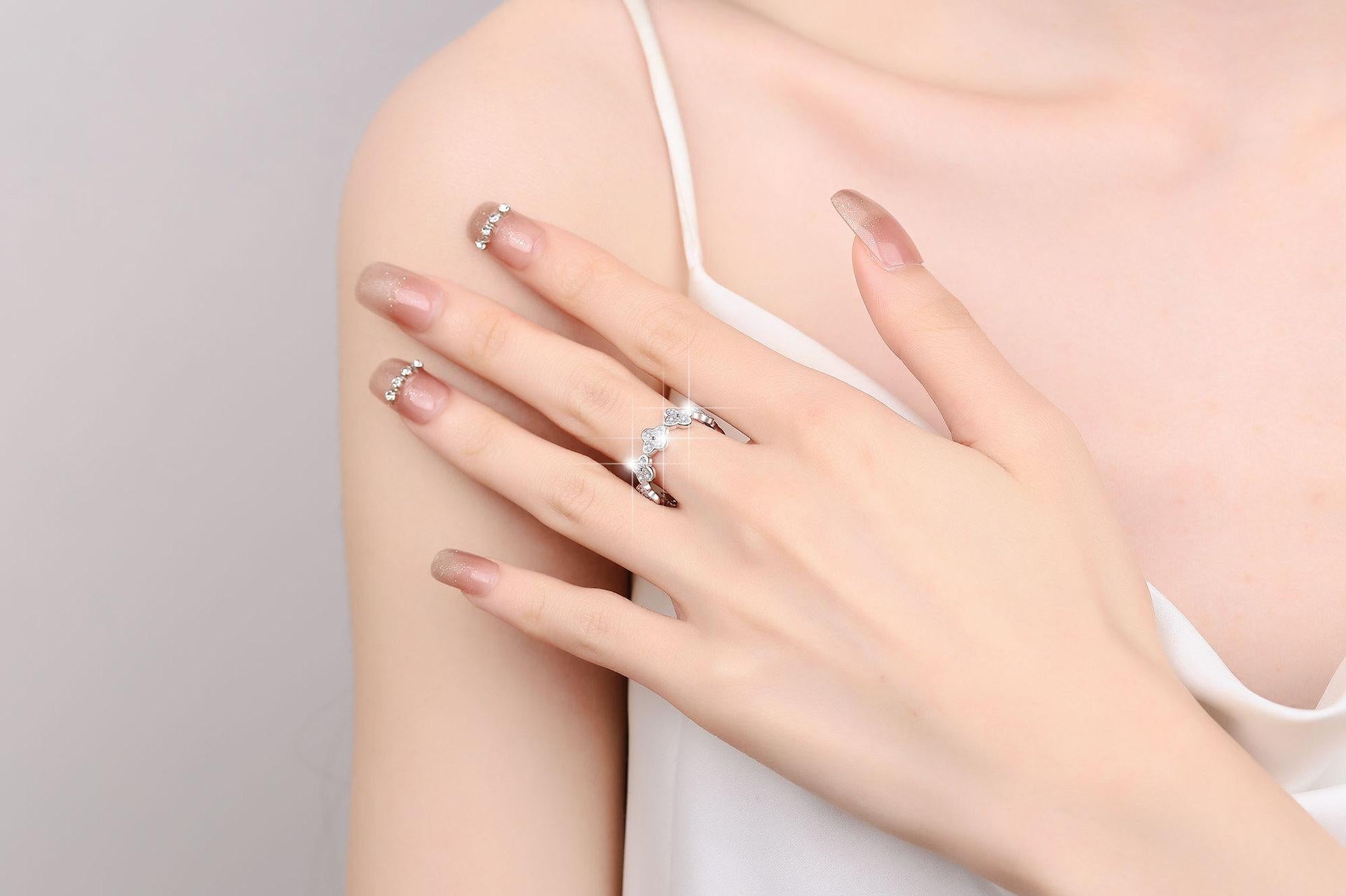 925 Sterling Silver Four-Petals Band Ring Synthetic Moissanite Ring fashion jewelry accessory woman girl promise ring-253(35%)