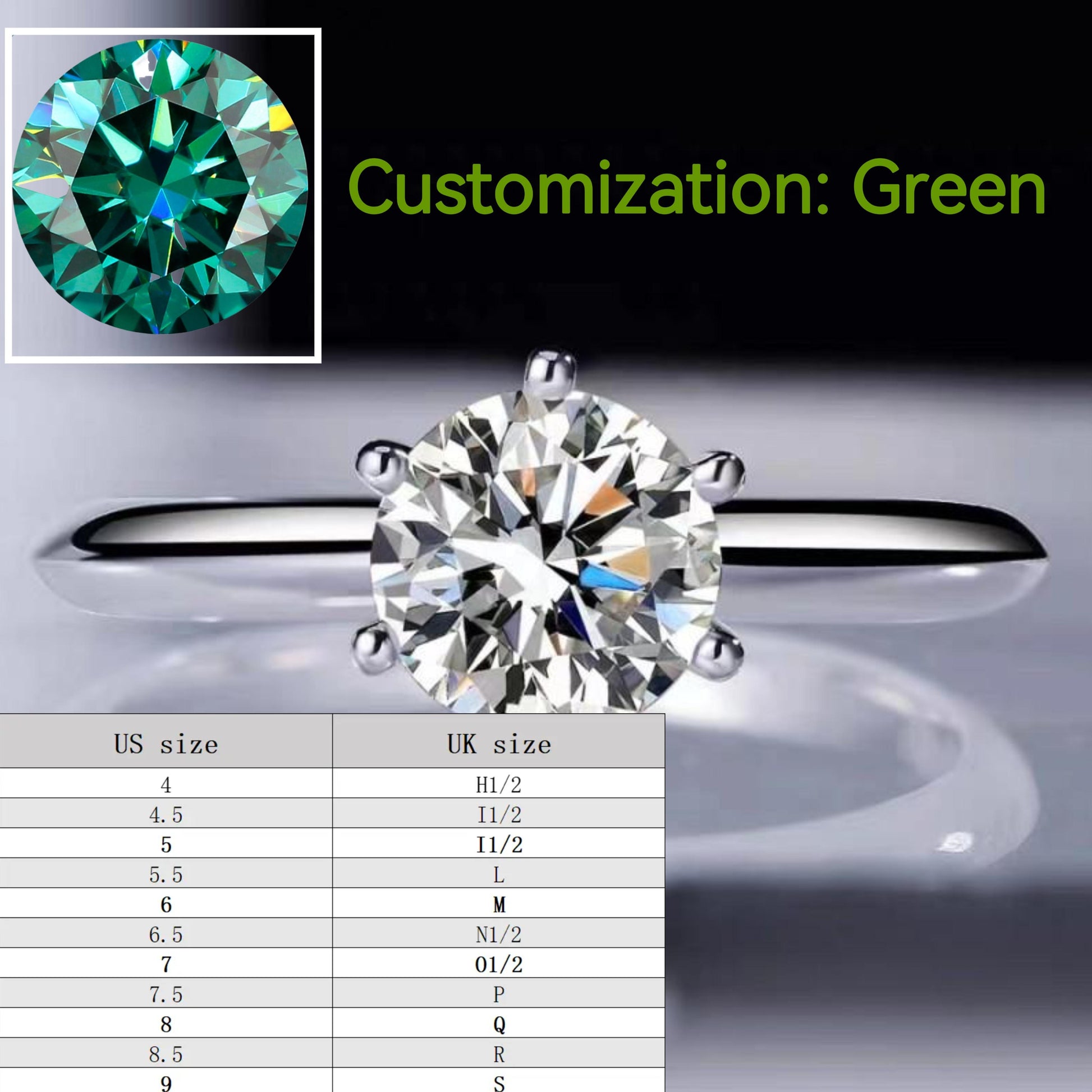 Green-S925 Sterling Silver D Color Synthetic Moissanite Six-claws Ring 1/2/3/5 Carat Elegant Luxury Daily Life Woman Birthday Gift Engagement-235(35%)