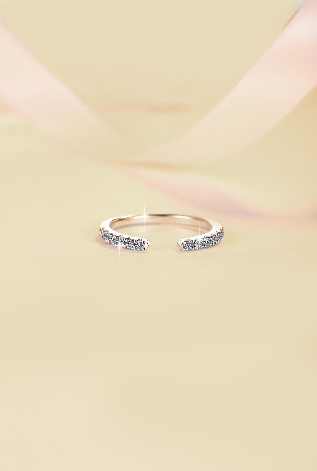 S925 Sterling Silver Adjustable Open Stackable Moissanite Ring-582(35%)