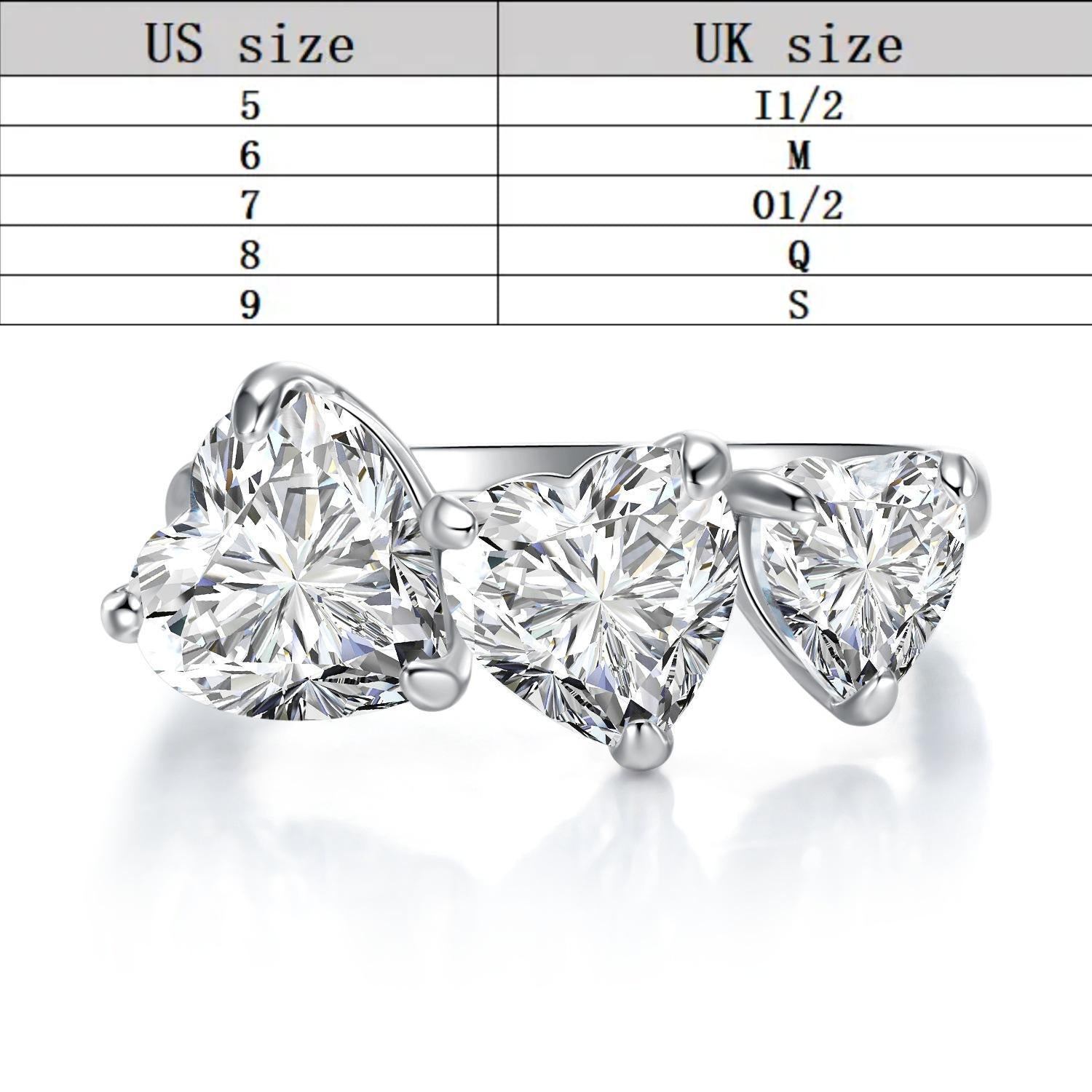 S925 sterling silver heart cut three-heart ring 6A cubic zirconia ring fashion jewelry accessory woman Girl promise ring-226(35%)