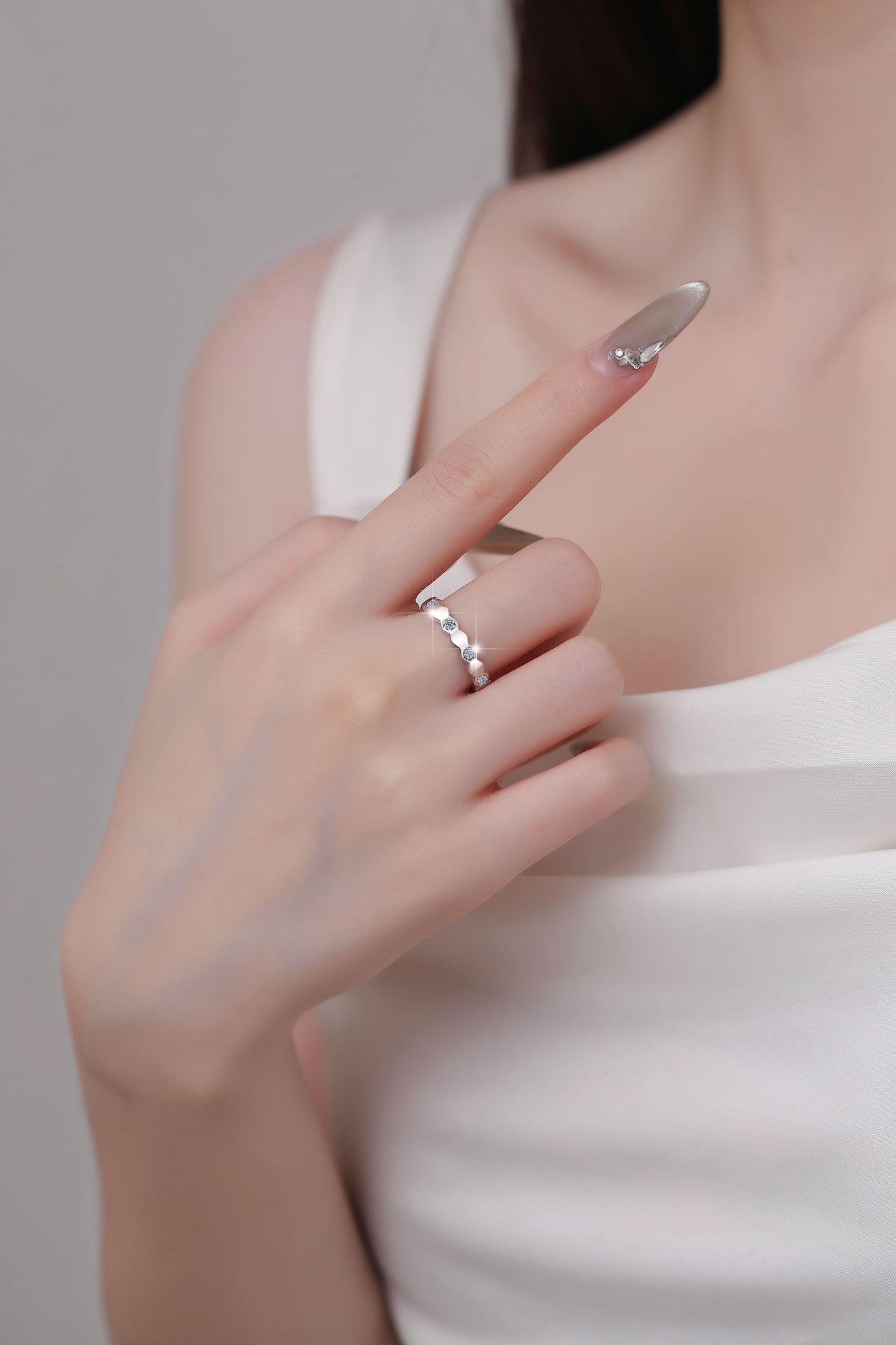 S925 Sterling Silver Honeycomb Band Ring Synthetic Moissanite Ring fashion jewelry accessory woman girl promise ring-188(35%)