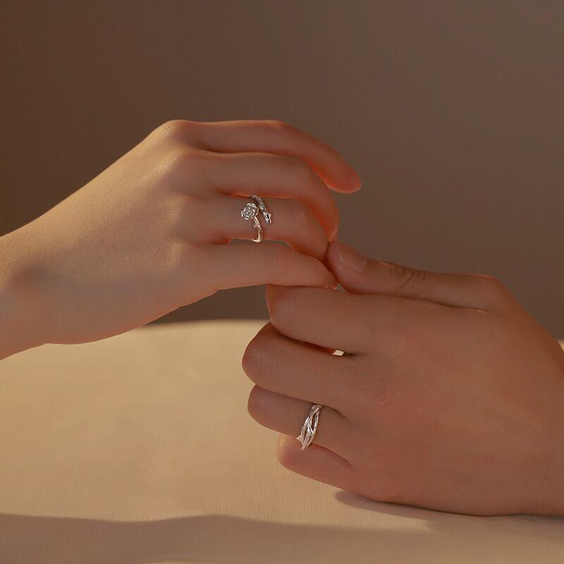 S925 Sterling Silver Thorns and Roses Couple Open Ring - 543 weddingring(45%)